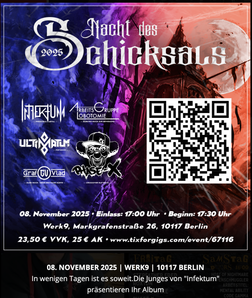 Die aufstrebende Band „Graf Vlad“ betritt die Musikszene mit einer einzigartigen Vision. Mit einem besonderen Sound, der eine faszinierende Mischung aus Rock und elektronischen Elementen präsentiert, erschafft Graf Vlad eine emotionale Klanglandschaft.